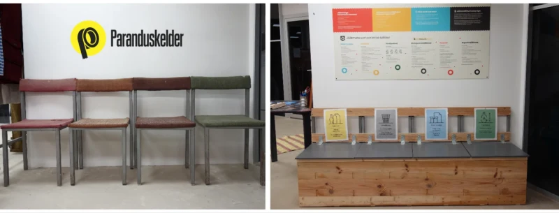 Kes meil külas on käinud, on ehk märganud seda sorteerimispinki. Ideaalis tuleviku Paranduskeldris jäätmeid ei teki ja seetõttu lõime sorteerimisjaama kohe multifunktsionaalse – saab istuda, lamada, sissepugeda ja kasvõi peal magada