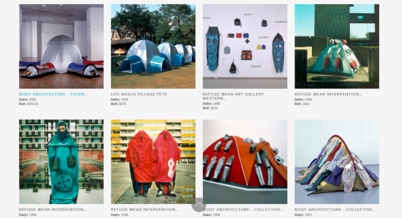 Installatsioon “Refuge Wear” (1992–1998 Lucy + Jorge Orta) on ajutised varjualused, mida saab muuta rõivasteks, et pakkuda kaitset karmides tingimustes ja peavarju hädaolukordades. Sari, millega Lucy Orta alustas pärast Lahesõja majanduslanguse perioodi ja sellele järgnenud aktsiaturu krahhi.
